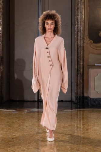 وردة الصحراء مزيجٌ شاعريٌّ بين تصميم عفراء النعيمي الثاقب وتميز لومباردي في التصنيع. تتميز المجموعة بأقمشة فاخرة كالشيفون، وحرير الكادي، والموسلين، والقنب المرن، مصممةً بتصاميم تتراوح بين العباءات المنسدلة والفساتين الواسعة، والسترات المهيكلة، والمجموعات المصممة بعناية. تعكس كل قطعة توازنًا دقيقًا بين السلاسة والدقة.