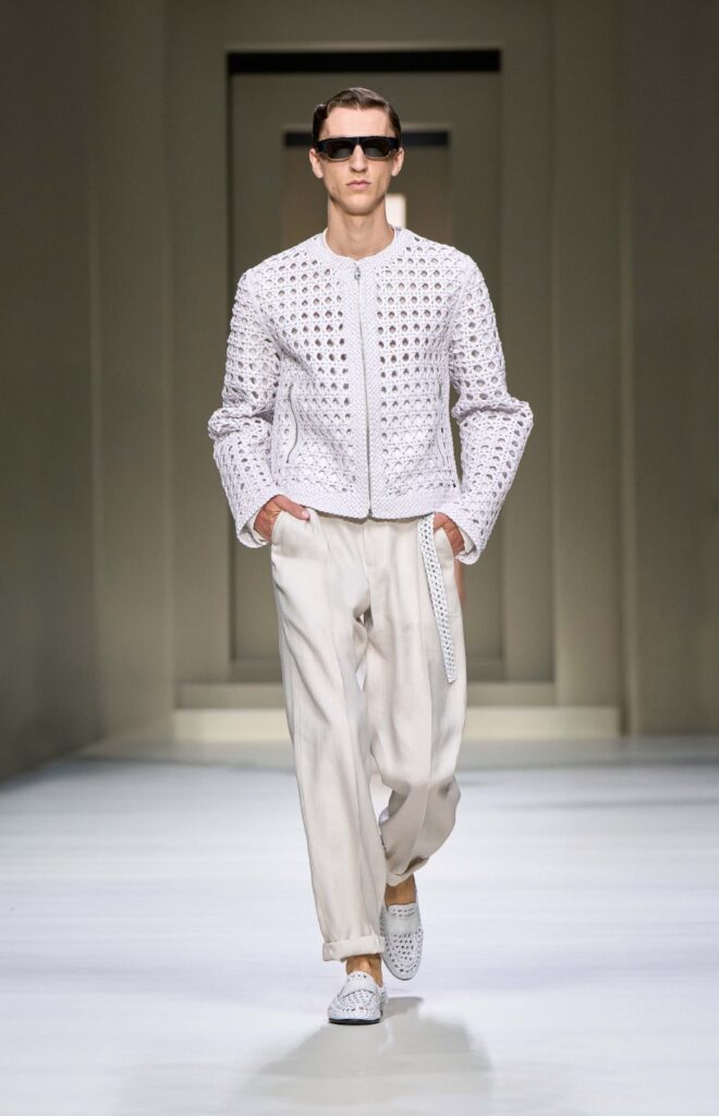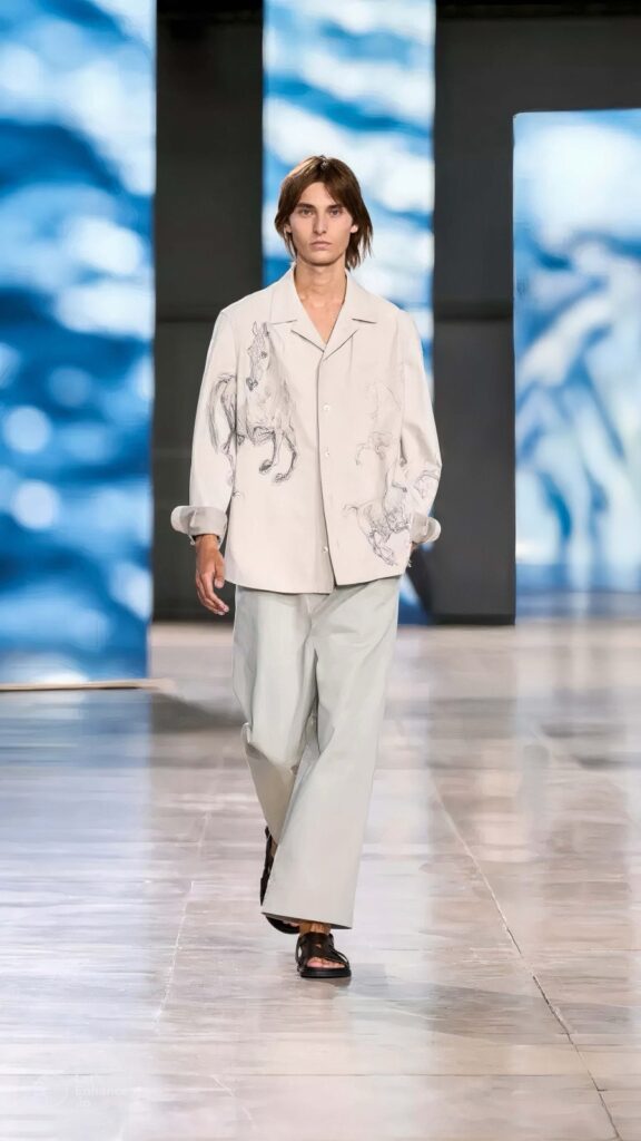 سترة بطبعات حصان على الجانبين أنيقة ومختلفة من تصميم دار أزياء Hermes لربيع وصيف 2025 – المصدر: Hermes