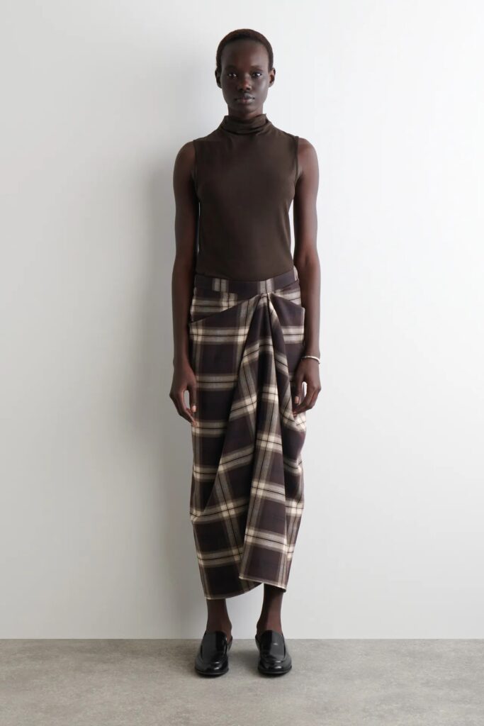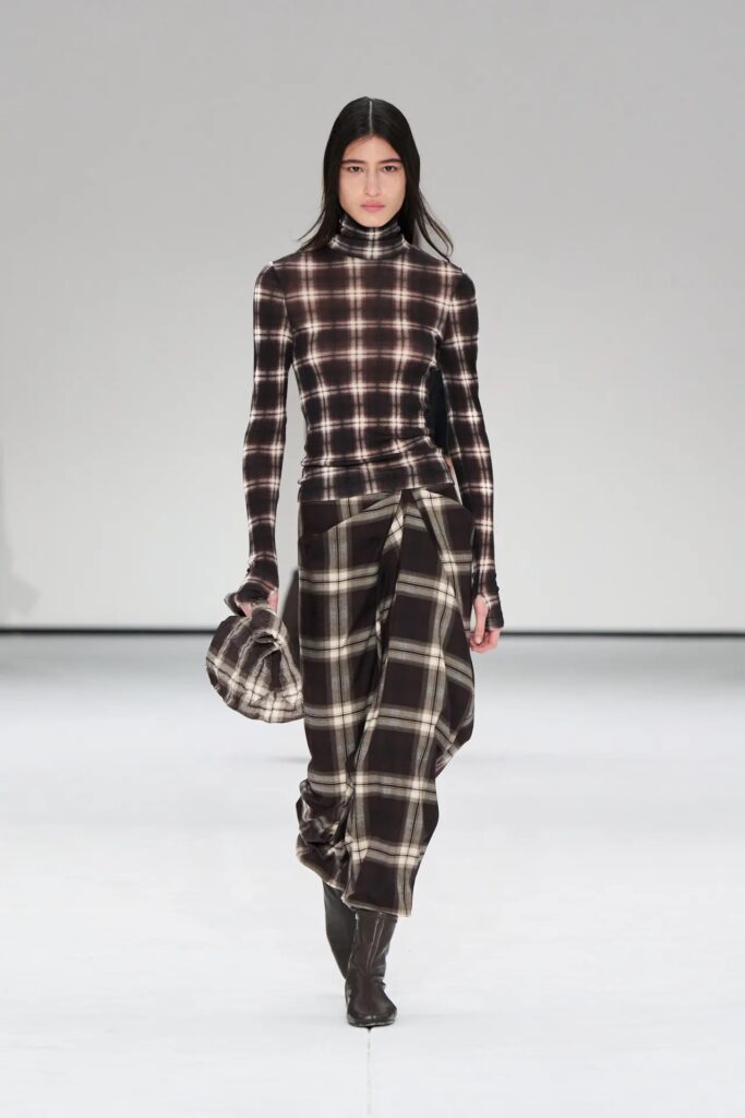 في “هو وات وير”، سلّطنا الضوء على نقشة الكاروهات كصيحة رئيسية في عالم الطبعات لخريف 2025 ، وهو ما أكده مصممون مثل بروينزا سكولر ، وميو ميو ، وكالماير. وقد اعتمدت COS هذا النمط في مجموعتها لموسم خريف وشتاء 2025. وتميّز العرض بإطلالات كاروهات جذابة من الرأس إلى القدمين، حيث ارتدت قمصانًا مع بناطيل وتنانير مصممة، وبلوزات أنيقة بياقة عالية كاروهات مُنسّقة تحت سترات جلدية كبيرة الحجم ، وحقائب يد صغيرة فضفاضة كاروهات تحملها عارضات الأزياء. تبتعد هذه النسخة المُحدّثة من نقشة الكاروهات عن أنماط أوائل الألفية الثانية، حيث تُركّز على خطوط أنيقة بألوان هادئة تُضفي لمسة من الانتعاش والرقي.