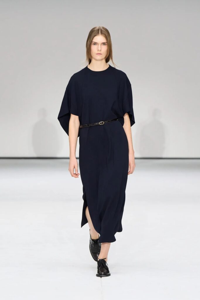أقيم العرض في مستودع غرين بوينت تيرمينال في بروكلين، محتفلاً بالتزام COS بالخلود والحرفية والجودة. قدّمت المجموعة جماليات راقية وقوية، تجمع بين البنية والانسيابية. على سبيل المثال، رُتّبت بلوزات بأكمام طويلة مزينة بتفاصيل وشاح تحت بلوزات مصممة بياقة دائرية. سلّطت السترات ذات الخصر المنسدل والفساتين المنحوتة الضوء على منحنيات القوام الأنثوي، بينما أضفت الأحذية المسطحة – بما في ذلك أحذية لوفر الجلدية ، وأحذية ديربي، وأحذية الكاحل ذات الجورب ، وأحذية سنيكرز من جلد الغزال – لمسة من الراحة والأناقة على الإطلالات.