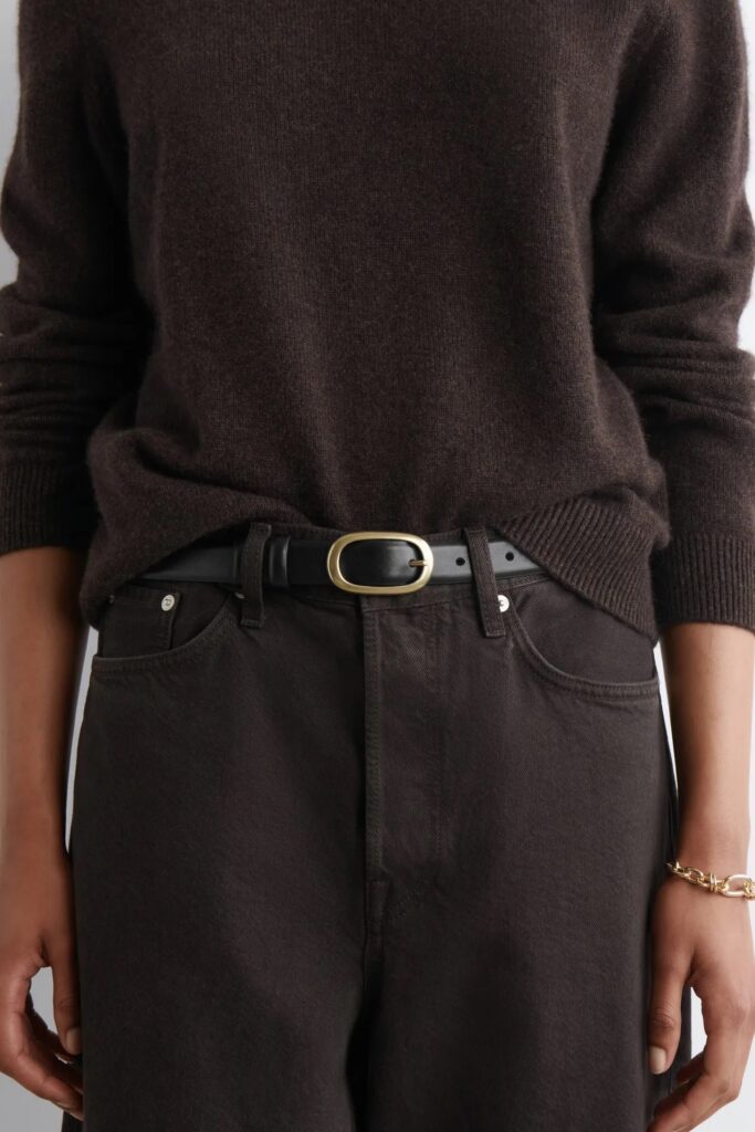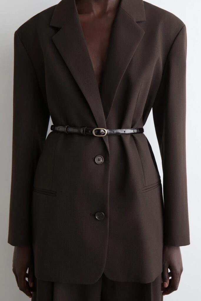 رغم بساطة تصميم الأحزمة الجلدية ، إلا أن التصميم الفريد يرتقي بها إلى مستوى جديد. في عرض أزياء COS، عرضت العلامة التجارية مجموعة رائعة من الأحزمة الجلدية الأنيقة والرفيعة بنقشة جلد التمساح، والتي أحكمت تضييق خصور الفساتين الطويلة المنسدلة، والسترات الجلدية، والبلوزات الطويلة. غالبًا ما تمتلكين حزامًا جلديًا رائعًا ، لذا في المرة القادمة التي ترغبين في اقتنائه، فكّري في الخروج عن المألوف. بدلًا من تمريره في عُرى بنطالك الجينز أو بنطالك المفضل ، استلهمي من عرض أزياء COS وجرّبي لفّه حول فستان أو سترة أو بلوزة أنيقة.
